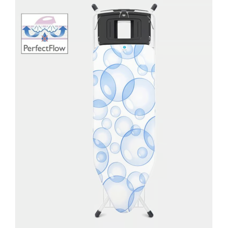 Prednosti i značajke Lako peglanje - XL model za peglanje košulje bez pomicanja. Izvrsno za aparate za kuhanje na pari - sklopivi držač aparata za kuhanje na pari za aparate za kuhanje na paru (do 39 x 24 cm) ili obična glačala (do 13 cm). Super učinkovit – stalak za rublje za odlaganje ili vješanje svježe izglačanog rublja. Bolje glačanje u kraćem vremenu - troslojna navlaka PerfectFlow iz Philipsa i Brabantie. IZDRŽLJIV - Izdržljiva navlaka od 100% pamuka, debljine 2 mm (prvi sloj). Nježno glačanje - 3D tekstilna baza za bolji protok pare (druga baza). Bez viška vode - podloga s debelim premazom održava pokrov i pod suhima (treća podloga). Bez ljuljanja - stabilan i čvrst četveronožni okvir (čelična cijev promjera 25 mm). Pogodan za leđa – može se prilagoditi vašoj idealnoj radnoj visini (75 do 98 cm). Nema iznenađenja - blokada za djecu sprječava slučajno sklapanje, blokada za transport drži stol sklopljenim. Ubojica bora – precizno pristajajuća navlaka s uzicom i rastezljivim sustavom. Bez klizanja, bez ogrebotina - robusne zaštitne kapice protiv klizanja. Bezbrižno korištenje – 10 godina jamstva i servisa. Ekološki prihvatljiv – Cradle to Cradle® certificiran, brončana razina.
