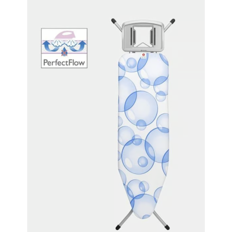 Prednosti i značajke Vječni favorit – najpopularnija Brabantia daska za glačanje. Fleksibilni – postolje za glačalo na paru za ljevoruke i dešnjake (za glačala do 15 cm). Bolje glačanje u kraćem vremenu - troslojna navlaka PerfectFlow iz Philipsa i Brabantie. IZDRŽLJIV - Izdržljiva navlaka od 100% pamuka, debljine 2 mm (prvi sloj). Nježno glačanje - 3D tekstilna baza za bolji protok pare (druga baza). Bez viška vode - podloga s debelim premazom održava pokrov i pod suhima (treća podloga). Bez ljuljanja - stabilan i čvrst četveronožni okvir (čelična cijev promjera 22 mm). Pogodan za leđa – može se prilagoditi vašoj idealnoj radnoj visini (69 do 96 cm). Nema iznenađenja - blokada za djecu sprječava slučajno sklapanje, blokada za transport drži stol sklopljenim. Ubojica bora – precizno pristajajuća navlaka s uzicom i rastezljivim sustavom. Bez klizanja, bez ogrebotina - robusne zaštitne kapice protiv klizanja. Snažan izgled - moderan omot i crno obojeni okvir. Bezbrižno korištenje – 10 godina jamstva i servisa. Ekološki prihvatljiv – Cradle to Cradle® certificiran, brončana razina.