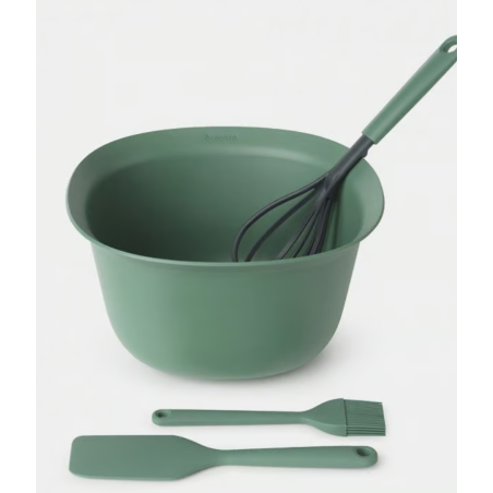 S Tasty+ Baking Setom iz Brabantije, praktičnim kvartetom za pečenje i miješanje, svi nezgodni trenuci i nedoumice su otklonjeni. Ovaj pametni set sastoji se od posude za miješanje od 3,2 L, pjenjače i žlice za cijeđenje, lopatice za pečenje, strugalice i četke za pečenje. Pečenje je povjetarac!
