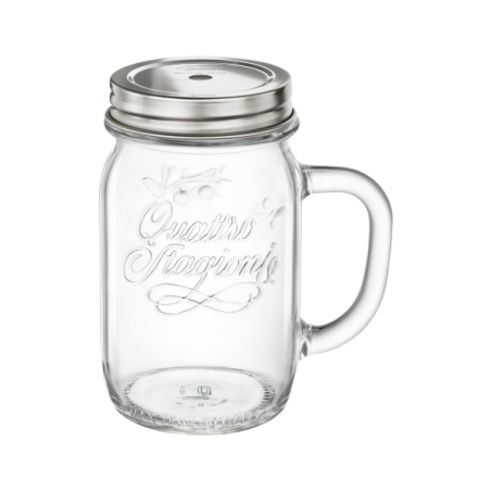 Staklenke su zapravo opremljene poklopcima od nehrđajućeg čelika koji omogućuju razne namjene: ovaj veliki i prostrani model opremljen je probušenim poklopcem što ga čini savršenim za predstavljanje trendovskih koktela na neobičan način.