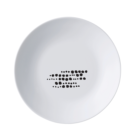 Izrađena od otpornog kaljenog opalnog stakla, ukrašena je tehnikom zahvaljujući kojoj boje s vremenom ostaju nepromijenjene: tanjur se može kombinirati s tanjurom za večeru i tanjurom za desert, ali se također podudara s modelima iz iste kolekcije s različitim ukrasima, za ugodan efekt "mix and match".