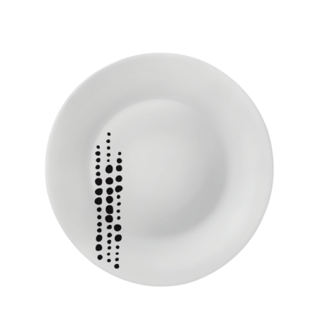 Ovaj tanjur dio je kolekcije Chiaroscuro, gdje svakodnevni predmeti postaju šik i suvremeni. Tanjuri, šalice i spremnici igraju se crno-bijelom bojom i stvaraju jedinstvene kombinacije koje donose trendi dodir na stol.