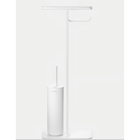 Prednosti i značajke Sve u jednom - polica, držač za toalet papir i četka za toalet u jednom stalku. Spremni odjednom - sve što vam treba u WC-u, bez lijepljenja i bušenja. Handsfree - polica za telefon ili druge predmete. Sve pri ruci - integrirani držač za toalet papir. Najbolji prijatelji - držač četke za WC školjku praktično pričvršćen na postolje. Bolje i lakše čišćenje ispod ruba - poseban oblik četke. Diskretno - zatvoreni držač četkica. Čvrsto stajanje - otežana baza osigurava stabilnost. Nema klizanja, nema grebanja - mekana baza koja ne klizi. Osjećaj teksture - suvremeni mineralni premaz. Idealan za vlažna područja - izrađen od materijala otpornih na koroziju. Dokazana kvaliteta - ispitano da može izdržati do 2 kg. Korištenje bez problema - 10 godina jamstva i servisa. Održiviji izbor - izrađen od 34% recikliranih materijala, 94% se može reciklirati nakon upotrebe.