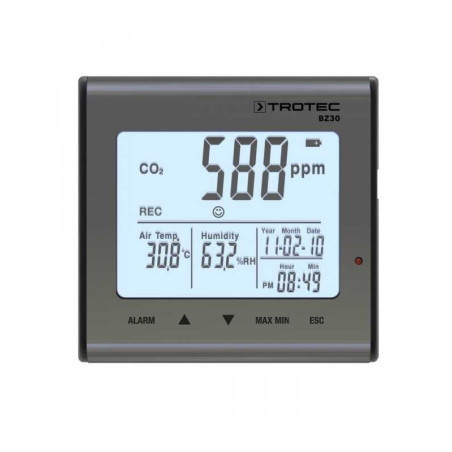 BZ30 data logger je mjerač podataka o kakvoći zraka. Može služiti kao kombinirani mjerni uređaj za arhitekte, inžinjere i graditelje. Ima veliki kapacitet memorije za do 40.000 mjernih vrijednosti i omogućuje snimanje koncentracije ugljičnog dioksida, temperature zraka i relativne vlažnosti u intervalima između 1 sekunde i 12 sati tijekom dužeg razdoblja.