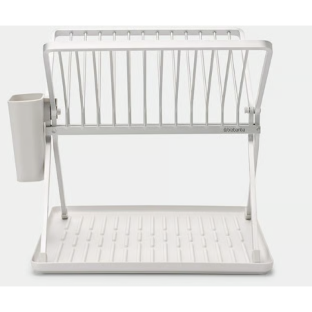 Posuđe se ne pere samo – ali se prirodno suši! Ovaj Brabantia SinkSide sklopivi stalak za sušenje posuđa s posudom za kapanje sretno može primiti do 13 tanjura ili lonaca, tava i čaša. Košara za sušenje pribora za jelo i pribora za jelo je uklonjiva, što olakšava sklapanje stalka i njegovo pospremanje. Dovoljno lijep da ima stalno mjesto u vašoj kuhinji, ali i vrlo kompaktan za pohranu - stalak koji se ljulja!