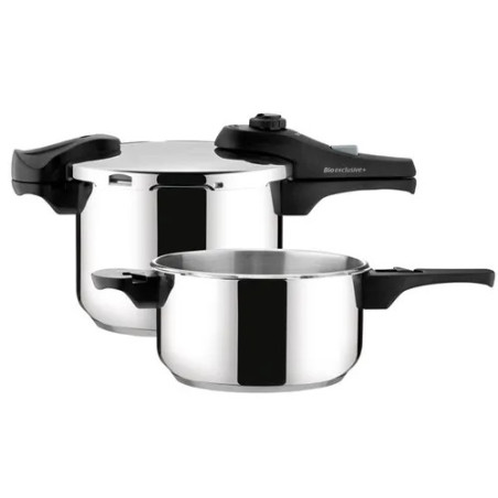 Izvrsna za kuhanje na niskom ili visokom tlaku, idealna za brzo i istovremeno ekonomično kuhanje. Izrađen od visokokvalitetnog nehrđajućeg čelika, opremljen čvrstim ručkama, troslojno dno sendviča pogodno je za sve vrste plinskih i električnih, vitro-keramičkih i indukcijskih štednjaka – 4 otvora za sigurnu upotrebu, uz vagu za lako mjerenje tekućine.