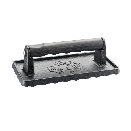 Roštilj za meso Težina od lijevanog željeza omogućuje ravnomjerno i brzo prženje odrezaka i burgera na otvorenom roštilju ili u tavi. Tipično oblikovani utori ne samo da daju mesu ukusan izgled s roštilja, već i skraćuju vrijeme prženja. Zahvaljujući robusnoj drvenoj dršci i integriranom udubljenju za prste, težina mesa udobno leži u vašoj ruci. Zajedno sa SPARK hamburger pressom, čini idealan duo za savršeno oblikovane pljeskavice.